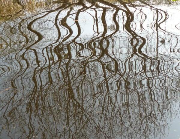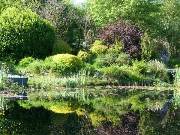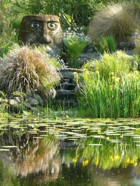 The site of the garden was originally bog. Just dig a hole here, and there is an instant pond. Instead of attempting to drain the land, we have embraced the water. There are multiple ponds, water falls, and damp areas.